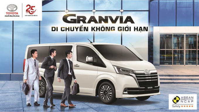 Với Toyota Granvia hoàn toàn mới, lần đầu tiên được giới thiệu tại Việt Nam, Granvia là mẫu xe 9 chỗ được nhập khẩu từ Nhật Bản sở hữu ngoại hình sang trọng, hiện đại, cùng với nội thất tinh tế, đẳng cấp, trang bị an toàn vượt trội mang lại sự thoải mái và yên tâm cho hành khách, đáp ứng các nhu cầu đưa đón lãnh đạo cấp cao, khách sạn khu nghỉ dưỡng 5 sao.