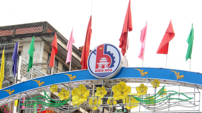 TP Biên Hòa cờ hoa được trang hoàng rực rỡ.