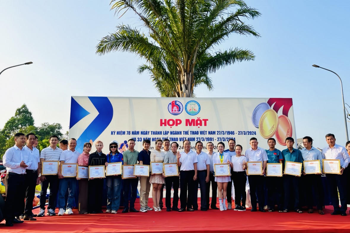 Ngày 24/3, UBND TP Biên Hòa phối hợp với Liên đoàn thể dục tỉnh Đồng Nai tổ chức chương trình “Họp mặt kỷ niệm 78 năm ngày thành lập ngành Thể thao Việt Nam (27/3/1946 - 27/3/2024) và 33 năm ngày Thể thao Việt Nam (27/3/1991 - 27/3/2024)”.