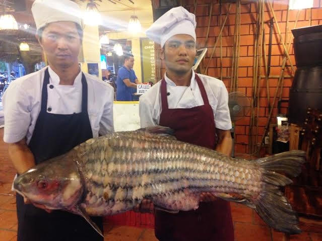 Theo đại diện nhà hàng này, hai con cá trên được ngư dân Campuchia đánh bắt trên sông Mê Kông (Campuchia), được thương lái Việt Nam mau lại rồi vận chuyển bằng đường bộ về TP HCM bán lại cho nhà hàng này.