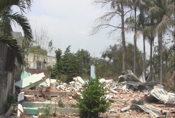 | Sau khi bị cưỡng chế, nhà của ông Đoàn Minh Quốc giờ chỉ là đống đổ nát. |