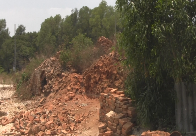 | Đất đai, cơ sở của bà Ngô Thị Liễu chỉ còn là đống gạch vụn. |