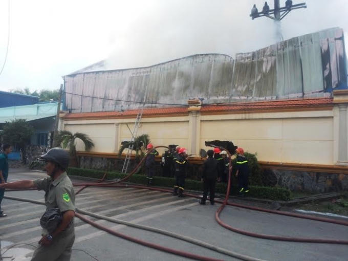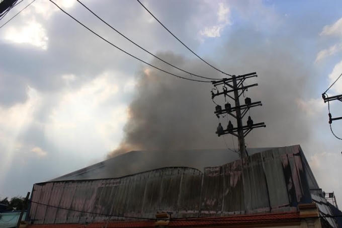 Chạy ra ngoài xong, hàng chục công nhân đã la hét và tìm phương tiện chữa cháy tại chỗ để hợp sức dập tắt đám cháy nhưng vô hiệu. Khói lửa đám cháy bốc cao mù mịt bao trùm toàn bộ cơ sở này.