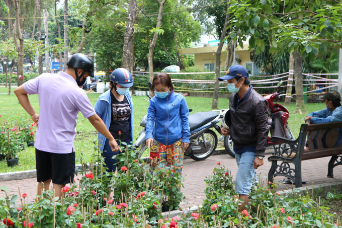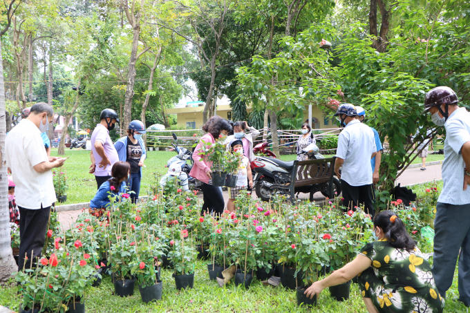 Theo ghi nhận, trưa 11/2 (30 tết), tại công viên 23/9 rất đông người dân kéo đến mua hoa tết, giá hoa hôm nay giảm mạnh do thương lái phải trả mặt bằng vào 12h trưa. Thương lái, nhà vườn bán xổ hoa với giá khoảng 50 nghìn đồng/chậu, hoa hồng leo mua 4 chậu tặng 1 chậu, cúc ruby giảm từ 380 nghìn/cặp xuống còn 100 nghìn đồng/cặp,…