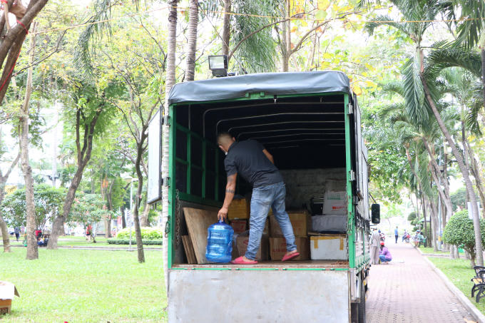 Thương lái dọn đồ lên xe chuẩn bị về quê ăn tết.