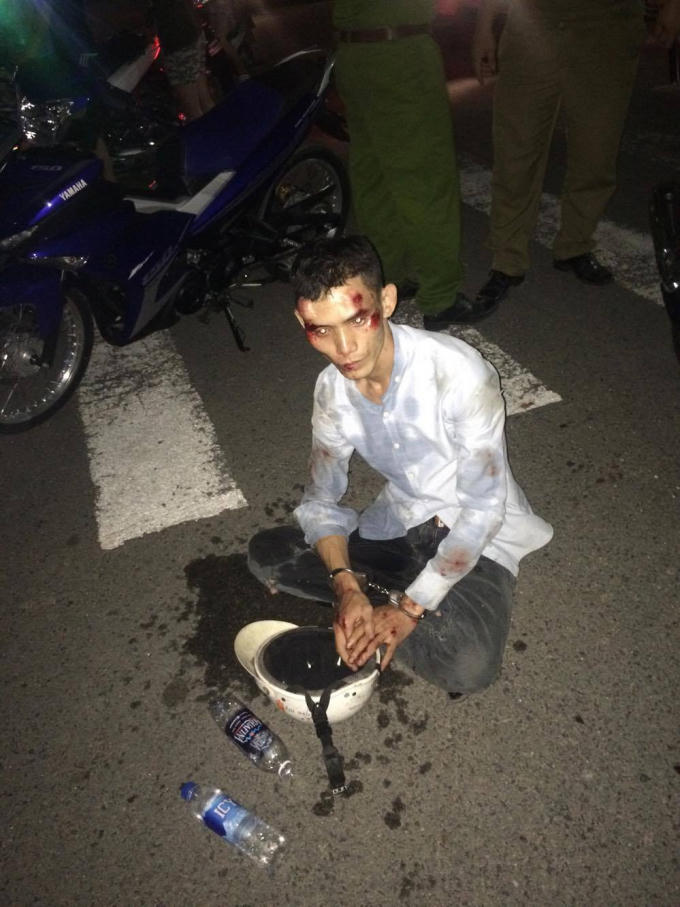 Phát hiện có CSGT phía sau, thanh niên này giật mình loạng choạng tay lái nên tự té ngã, các chiến sĩ CSGT cùng người dân xông vào khống chế, đưa người thanh niên này về trụ sở công an để giải quyết.
