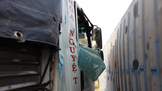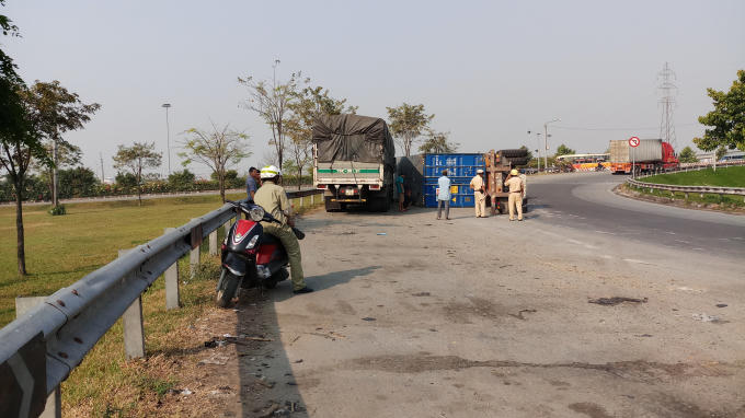 Tai nạn làm cho chiếc xe tải bị hư hỏng phần cửa bên phụ, chiếc container nằm chắn giữa đường, hư hỏng. Tài xế xe tải cho biết, do khuya nên chạy xe buồn ngủ, anh tấp xe sát lề để đậu ngủ. Nhưng điều đáng nói đây là điểm cua gấp, cấm các phương tiện dừng đậu gây ảnh hưởng giao thông.