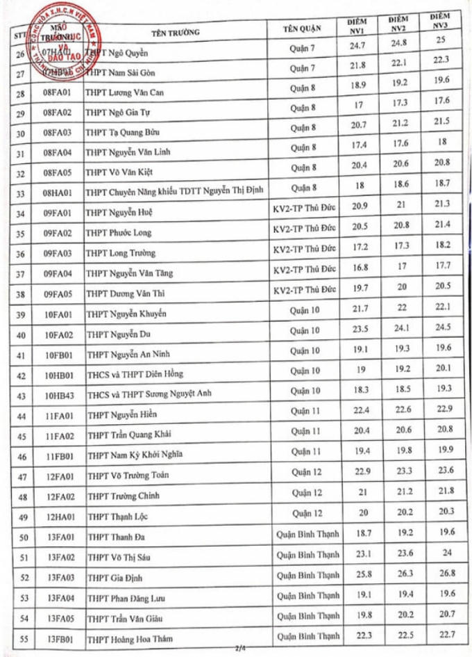 Có trường lấy điểm thấp từ khoảng 16 - 18 điểm như THPT Nguyễn Văn Tăng (TP Thủ Đức) với 16,8 điểm NV1, THPT Phước Kiển (huyện Nhà Bè) với 17 điểm.
