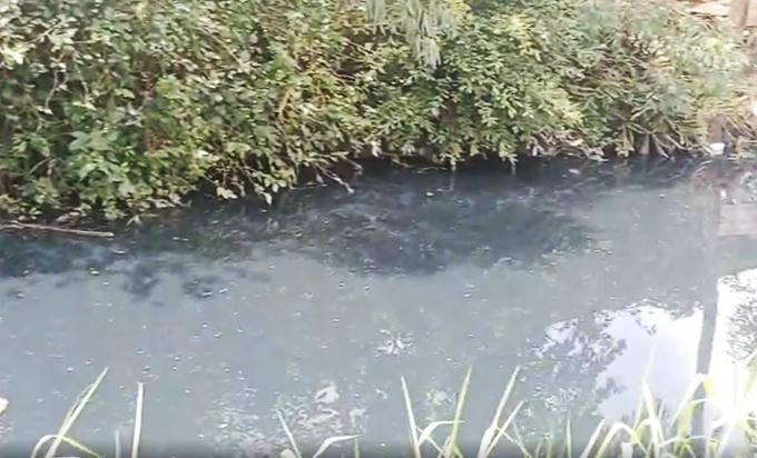 Kênh rạch Cầu Sa dọc theo CCN Quang Trung, dòng nước màu đen ngòm, ô nhiễm nghiêm trọng, có thể nói đây là dòng kênh “chết”.