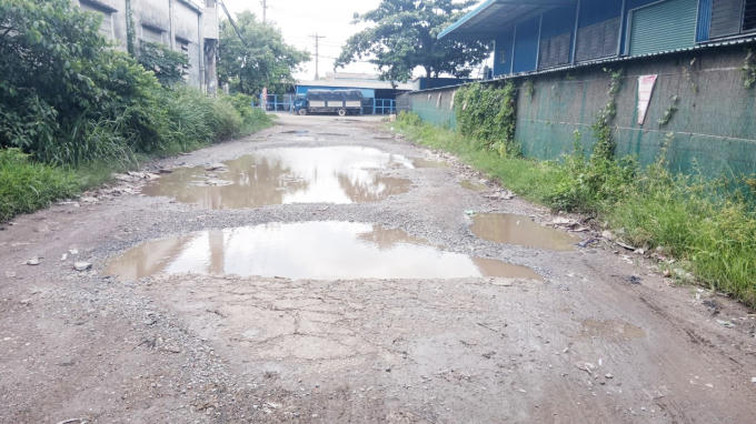 Càng đi sâu vào trong CCN Quang Trung, chúng tôi ghi nhận, hệ thống cơ sở hạ tầng tại đây thiếu sự quan tâm đầu tư, xuất hiện đoạn đường xuống cấp, ổ voi, ổ trâu dày đặc… Nhiều trụ sở, nhà xưởng của các công ty chen chúc nhau, nhưng toàn bộ các tuyến đường nội bộ trong CCN này đều không có tên, không được nâng cấp. Được biết, các đoạn đường này do các doanh nghiệp tự bỏ kinh phí ra làm.