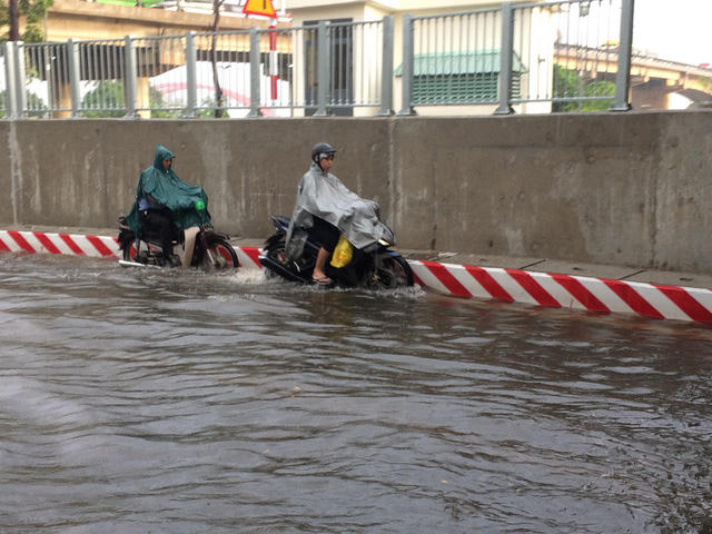 Ghi nhận tại hầm chui Bình Triệu, cả đoạn hầm dài hơn 50 mét bị ngập sâu, nhiều phương tiện di chuyển qua đây bị chết máy phải dẫn bộ.