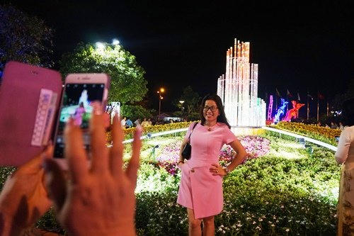 Tối 25/1, hàng ngàn người dân đổ về phố đi bộ Nguyễn Huệ (Q.1, TP.HCM) để chiêm ngưỡng đường hoa Tết Đinh Dậu 2017.