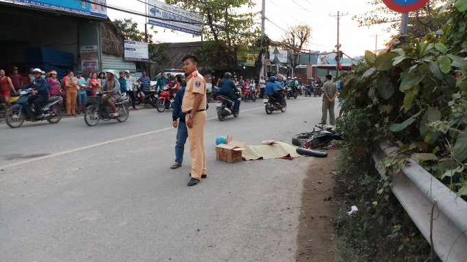 Va chạm làm cho ông Trung cày vào taluy đường rồi ngã ngược ra đường bị chính bánh xe ben cán qua người tử vong tại chỗ.