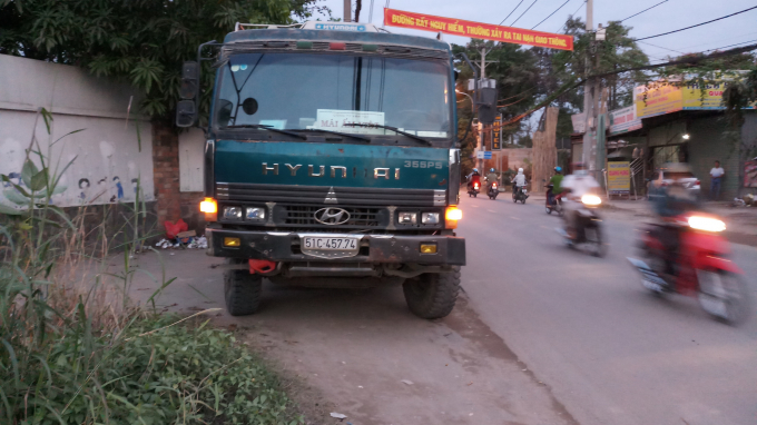 Đuổi được gần 2km thì bắt kịp và yêu cầu tài xế xe ben dừng xe.