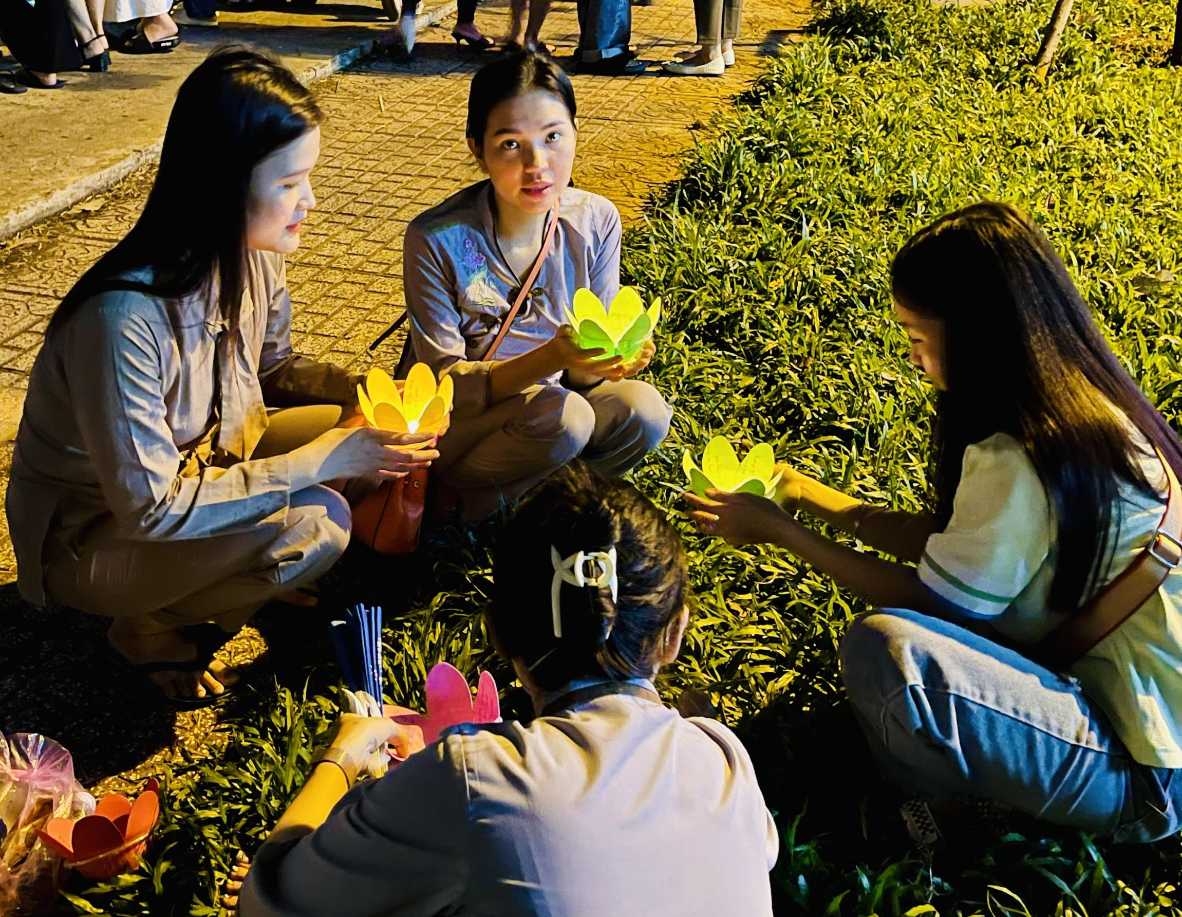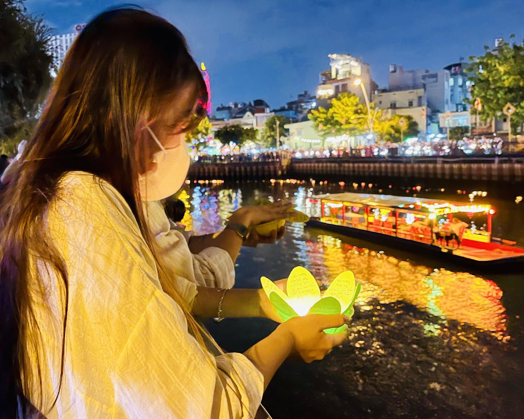 Chị L.N.L, một người dân ở TP Thủ Đức cho biết: “năm nay thông tin về lễ hội được chia sẻ nhiều trên các trang mạng xã hội nên rất nhiều người đã biết đến, vì vậy sau giờ làm tôi và nhóm bạn hẹn nhau đến đây thả hoa đăng để cầu mong sức khỏe, bình an cho gia đình và bản thân”.