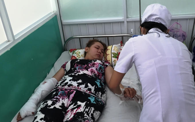 Sau khi xảy ra xô xát ở chợ, chị Yến về nhà thì bị người đàn bà bán sạp liền kề dẫn con rể đến chém gây thương tích nặng ở tay.