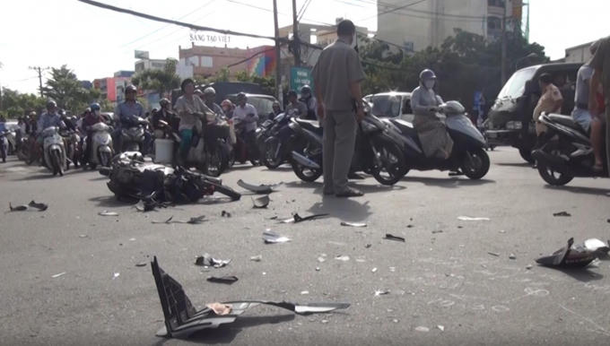 Cú tông cực mạnh khiến xe máy gãy rời phần đầu, nhiều bộ phân hai phương tiện bể nát, văng ra khắp đường. Nam thanh niên bị thương nặng được người dân đưa vào bệnh viện cấp cứu nhưng đã tử vong sau đó.