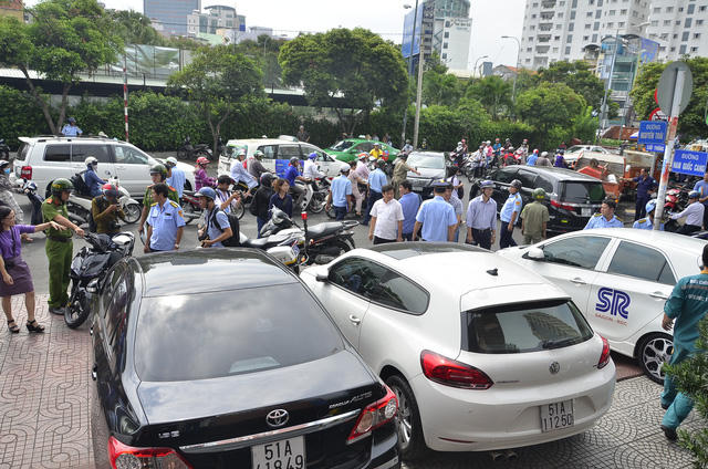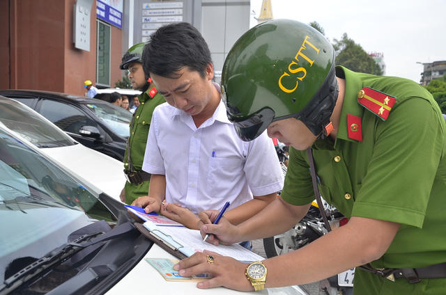 Tại giao lộ Nguyễn Trãi – Nam Quốc Cang (phường Phạm Ngũ Lão), lực lượng chức năng đã lập biên bản xử phạt đối với hàng loạt ô tô đỗ trên vỉa hè chiếm hết phần đường dành cho người đi bộ, nhiều lái xe cố tình không ra mặt đã bị lực lượng chức năng niêm phong xe và cẩu đi.