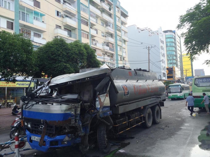Tại hiện trường, khoảng 40 mét dải phân cách bị tông văng, hư hỏng, phần đầu xe bồn biến dạng, kính xe vỡ nát cùng dầu nhớt rơi vương vãi giữa đường; chiếc xe buýt bị hư hỏng phần đầu, kính chắn gió ở đầu xe và thân xe vỡ vụn rơi tung tóe. Tài xế xe bồn bị thương khá nặng và được đưa đi cấp cứu.