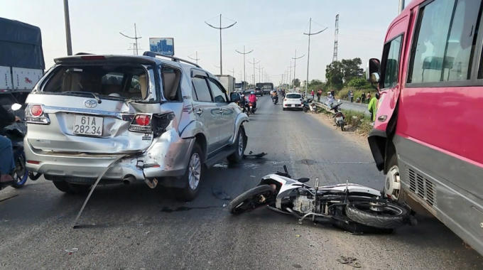 Khi vừa qua giao lộ đường Trần Đại Nghĩa, huyện Bình Chánh khoảng 200 mét thì xảy ra va chạm với 1 trong hai phương tiện là ô tô 7 chỗ và xe khách 29 chỗ lưu thông cùng chiều.