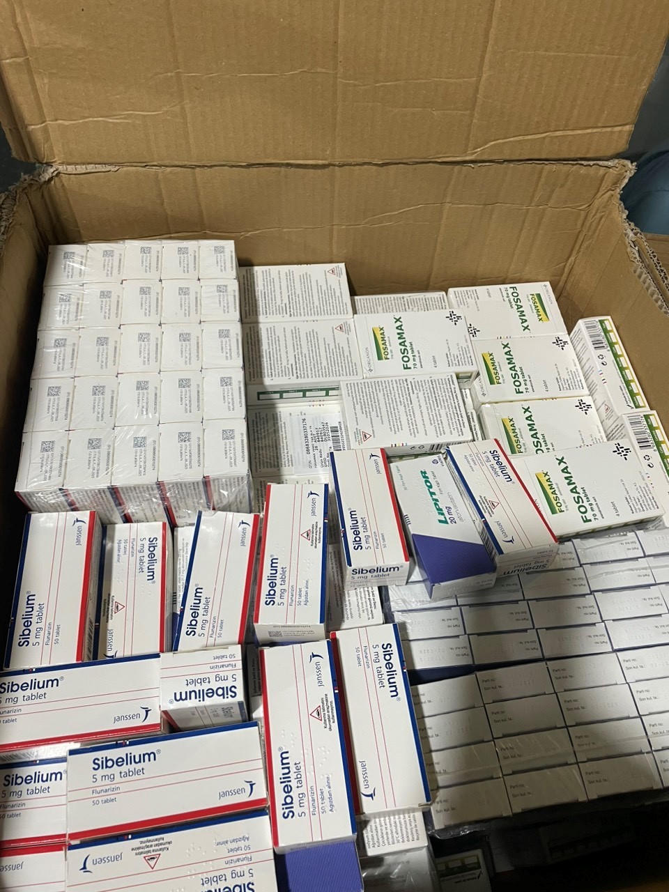 Đoàn kiểm tra cũng phát hiện 7.963 hộp thuốc tân dược, chưa qua sử dụng, không ghi xuất xứ, có tờ hướng dẫn sử dụng bằng tiếng nước ngoài, có nhãn gốc bằng tiếng nước ngoài nhưng không có nhãn phụ bằng tiếng Việt Nam, không có tài liệu chất lượng kèm theo, không rõ tình trạng chất lượng, không có hóa đơn chứng từ để chứng minh nguồn gốc hàng hóa.