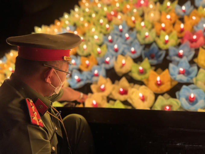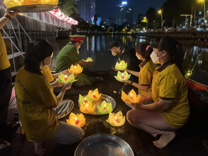 Người dân tại nhiều nơi đã đồng loạt tắt đèn, thắp nến và thả hoa đăng để tưởng niệm đồng bào đã mất vì đại dịch Covid-19. Tại chùa Pháp Hoa (TP HCM) nhiều người đã có mặt từ sớm, chuẩn bị hoa đăng để tưởng niệm.