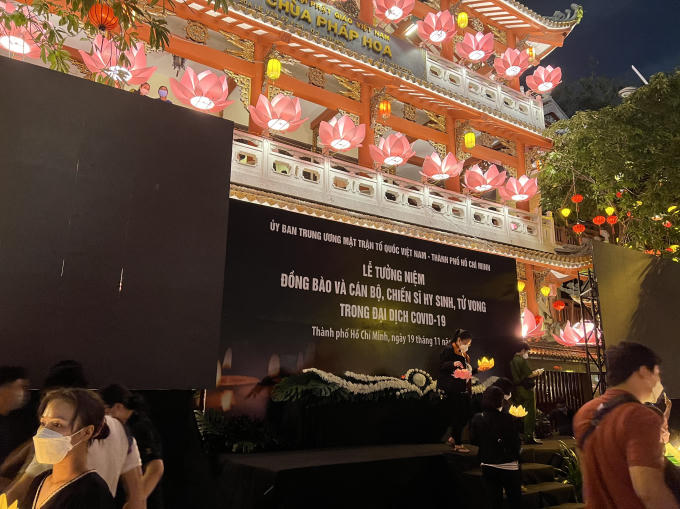 Tối ngày 19/11, lễ tưởng niệm 23.000 người mất vì COVID-19 diễn ra tại chùa Pháp Hoa - TP HCM, ngoài nghi lễ trong Hội trường Thống Nhất, các cơ sở tôn giáo trên địa bàn TP cùng đánh chuông; các tàu, thuyền kéo còi tưởng niệm và hàng nghìn hoa đăng được thả trên kênh Nhiêu Lộc - Thị Nghè, Tàu Hủ - Bến Nghé.