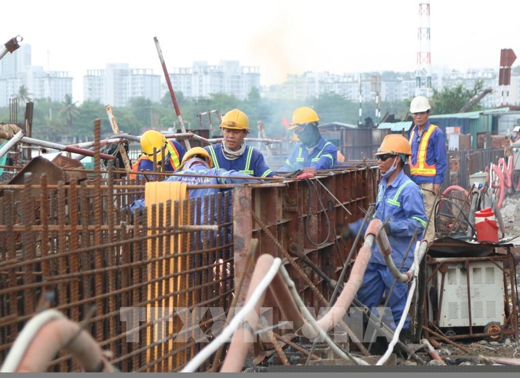Tính từ lúc khởi công (giữa năm 2016) đến ngày 20/5/2020, tổng giá trị thực hiện dự án đạt 67% tổng mức đầu tư, giá trị giải ngân bồi thường giải phóng mặt bằng đạt hơn 203 tỷ đồng. Ảnh: Trần Xuân Tình - TTXVN