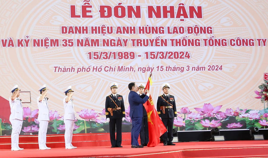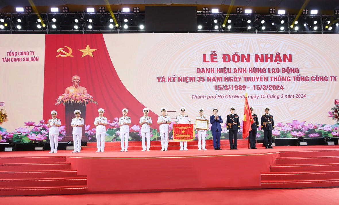 Sáng 15/3, tại TP. HCM, Tổng công ty Tân Cảng Sài Gòn (TCSG) long trọng tổ chức Lễ đón nhận danh hiệu Anh hùng Lao động và kỷ niệm 35 năm Ngày truyền thống (15/3/1989 - 15/3/2024). Đây là lần thứ 2 TCSG được trao tặng danh hiệu Anh hùng Lao động.