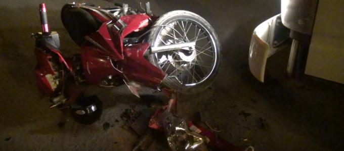 TP HCM: Xe máy tông trực diện xe tải trong đêm, 1 người bị thương nặng