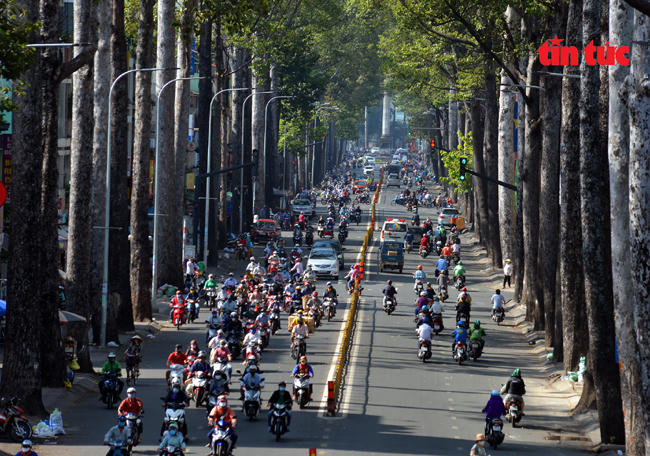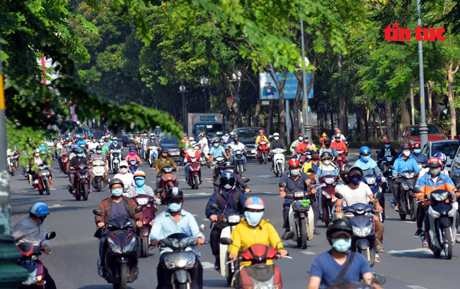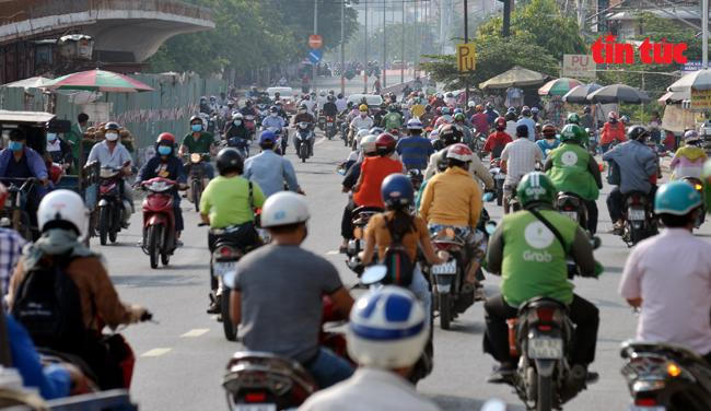 Báo Tin tức xin gửi đến độc giả những hình ảnh đường phố TP Hồ Chí Minh đông đúc trong sáng ngày đầu tiên của đợt hai thực hiện cách ly xã hội: