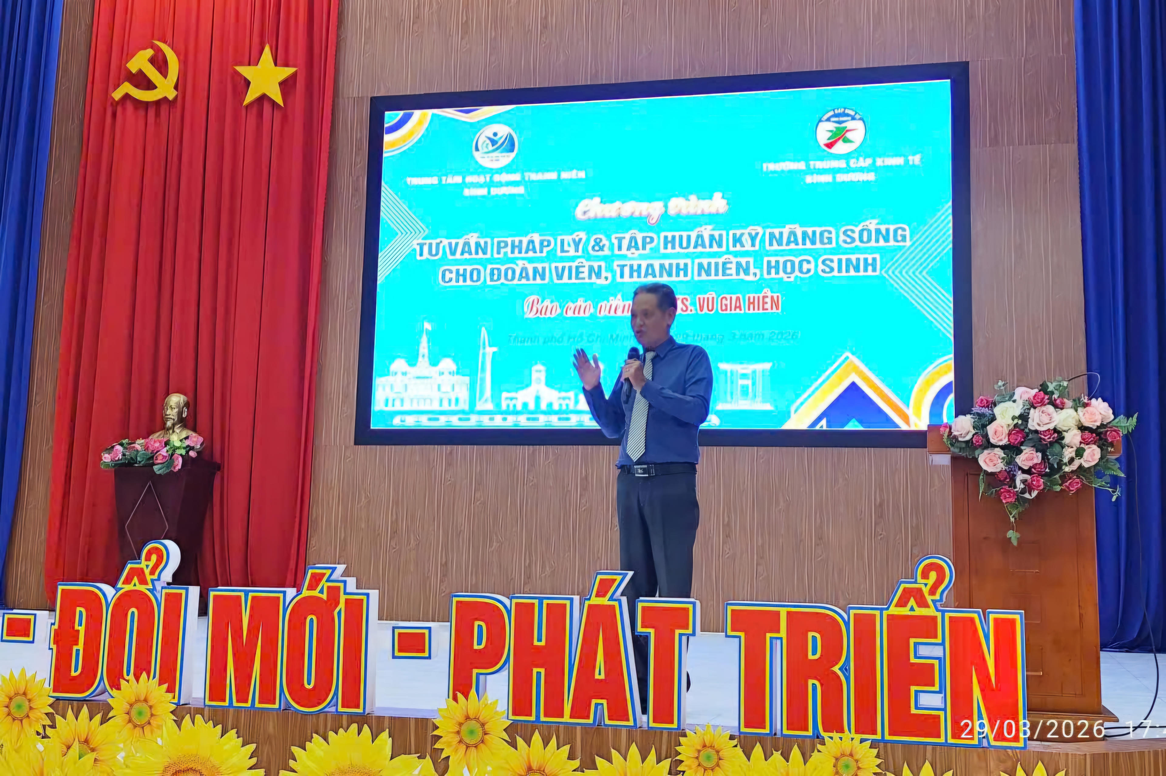 Chiều 29/3, tại Trường Trung cấp Kinh tế Bình Dương, Trung tâm Hoạt động Thanh niên Bình Dương đã tổ chức Chương trình “Tư vấn pháp lý cho đoàn viên, thanh niên” số 03, thu hút sự tham gia của hơn 300 học sinh, đoàn viên trong toàn trường.