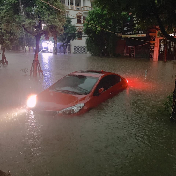Một chiếc ô tô Kia Cerato đã bị chìm trong "biển nước", khả năng chủ xe phải đi bảo dưỡng khá nhiều tiền sau sự cố đáng tiếc này. Ảnh Minh Đức Nguyễn.