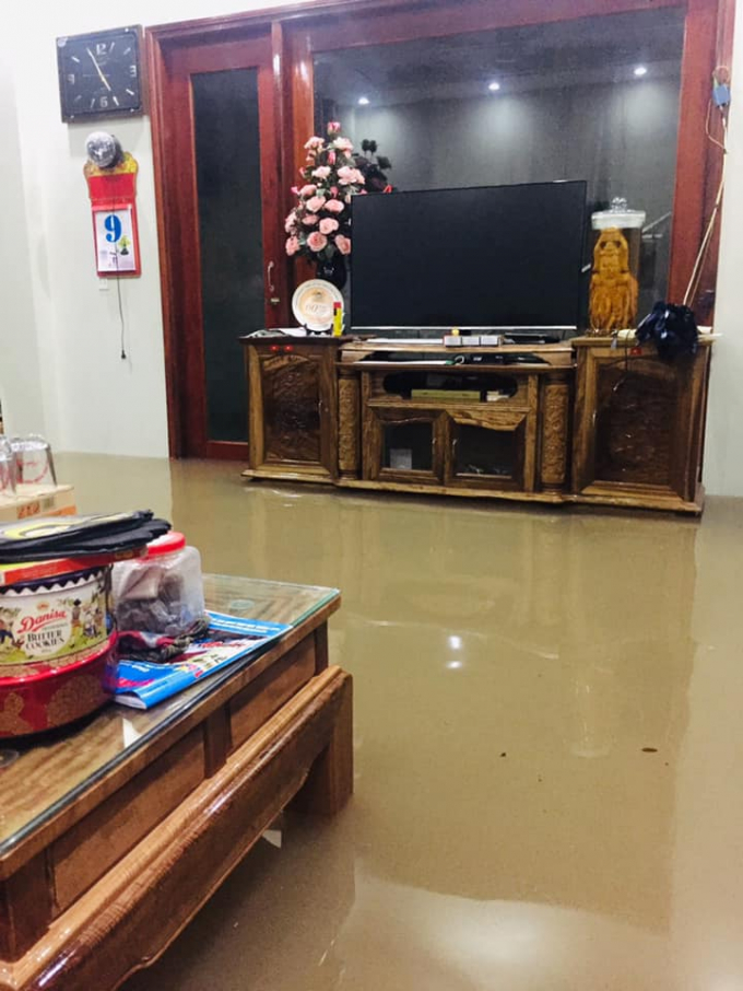 Một nhà dân đã bị nước tràn vào nhà. Ảnh Trương Công Tú.