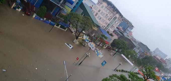 Khu vực nước đã ngập tới quá đầu gối. Hình ảnh được ghi nhận gần Công an Thành phố. Ảnh Tuấn Điện