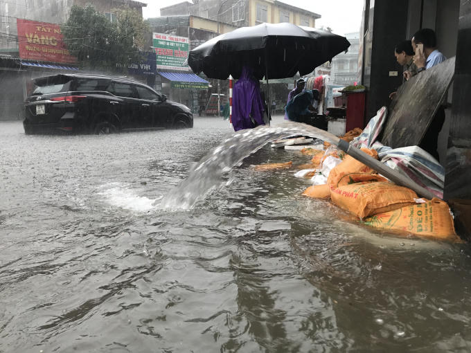 Thậm chí có những vị trí ngập cả mét nước, cơ quan chức năng phải căng dây để ngăn cho người và phương tiện không đi vào những đoạn đường trên. Nhiều nơi nước ngập tràn vào nhà dân, giao thông bị ách tắc.