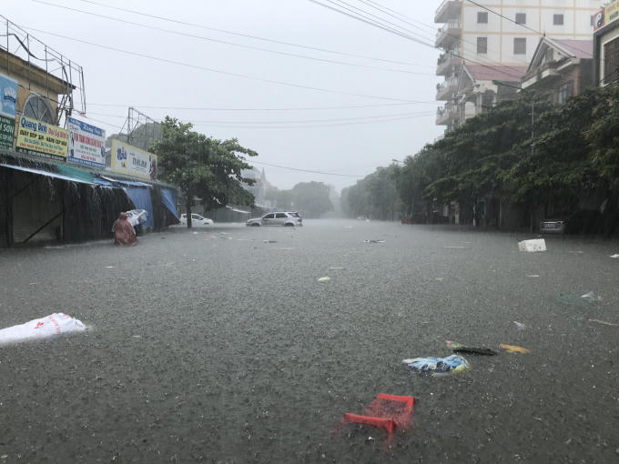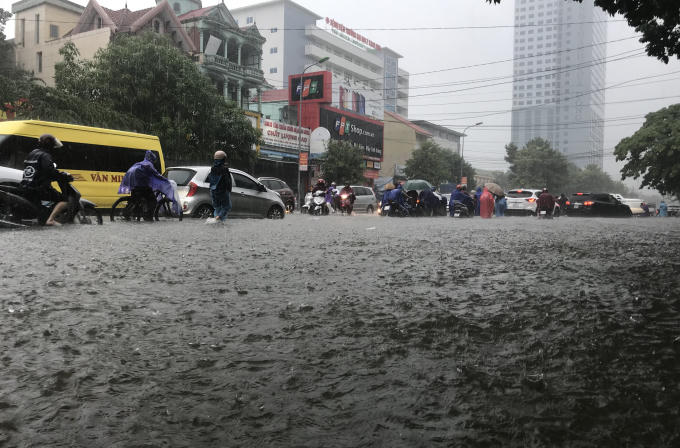 Mưa xối xả trong những ngày qua nhấn chìm TP Vinh trong biển nước.