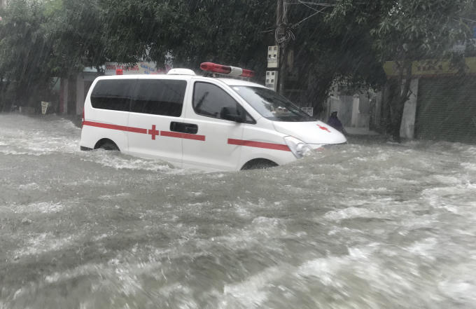 Xe cứu thương cũng "bơi" để đưa bệnh nhân đến bệnh viện.