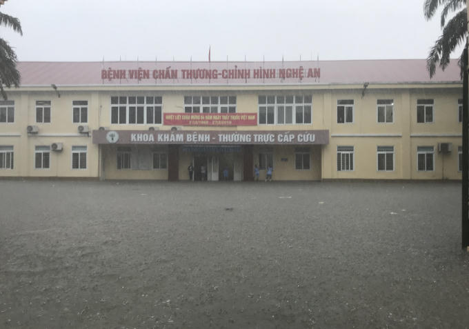 Nước ngập tại bệnh viện chấn thương chỉnh hình Nghệ An.