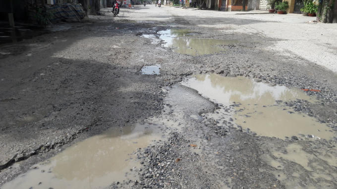 Đoạn đường cũng không có hệ thống mương thoát nước nên hễ cứ trời mưa là rơi vào cảnh ngập lụt. Nắng thì ngập ngụa với bụi, mưa lội bì bõm trong nước khiến người dân và các phương tiện tham gia giao thông qua đây rất khổ sở.