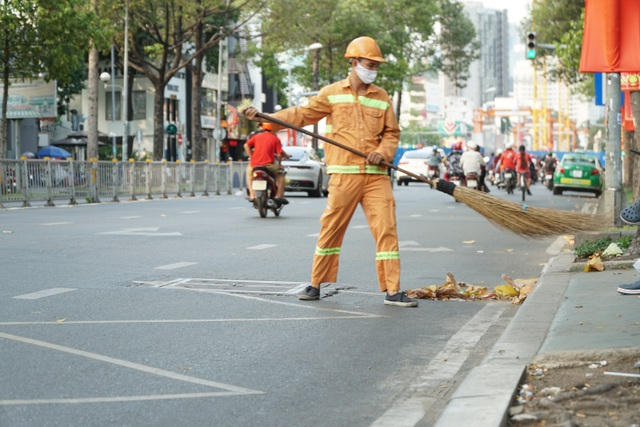 Trong khi hầu hết công nhân ở TPHCM được nghỉ làm và về quê chơi dịp nghỉ lễ 30/4 và 1/5, hàng ngàn công nhân dọn vệ sinh vẫn miệt mài làm việc vì một thành phố xanh, sạch, đẹp.