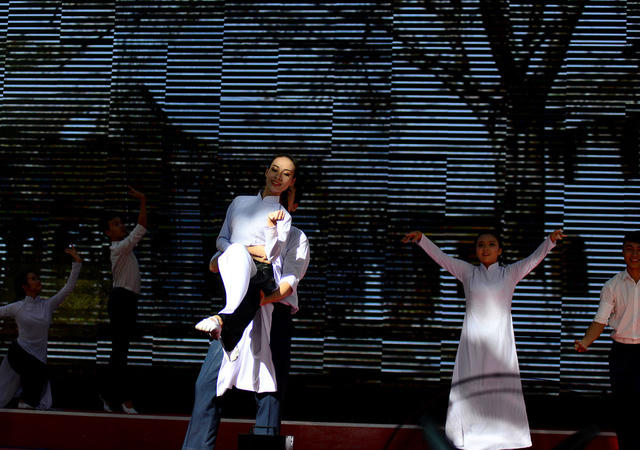 Trong không khí vui tươi ngày lễ khai giảng, các nữ sinh xinh đẹp mặc áo dài rạng rỡ cùng chào đón năm học mới. Trường chuyên Lê Hồng Phong vừa làm lễ khai giảng và kỷ niệm 90 năm thành lập.