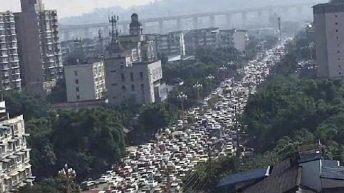 Hàng nghìn người lũ lượt tìm cách rời khỏi Lạc Sơn sau khi hay tin về màn khói trắng độc hại (ảnh: SCMP)