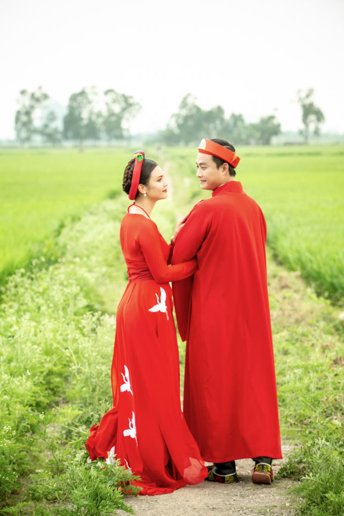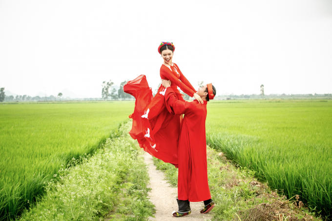 Trong bộ đồ vu quy mang sắc đỏ rực rỡ, ca sĩ Phạm Phương Thảo và “Lý Công Uẩn- Tiến Lộc” nổi bật giữa sắc xanh của trời đất khi thực hiện những phân cảnh trong MV mới của Phạm Phương Thảo có tên “Chàng vinh quy”, một sáng tác của chính Phạm Phương Thảo.