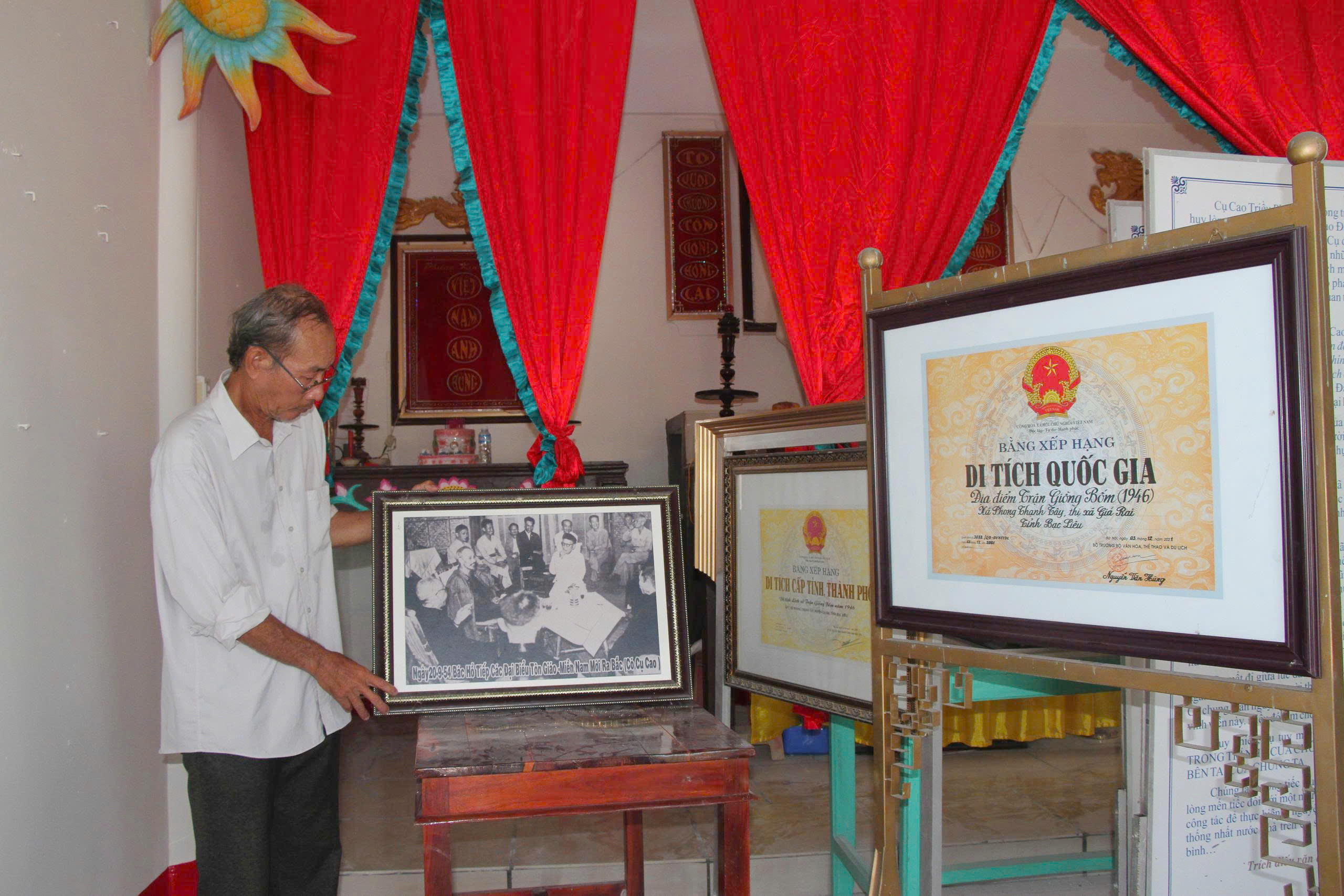 Ông Cao Việt Thắng - Trưởng Ban Quản lý khu di tích, cho biết: sau Nam Bộ kháng chiến, để chuẩn bị cho cuộc chiến đấu chống thực dân Pháp tái xâm lược, Hội thánh Cao đài Minh Chơn Đạo do cụ Cao Triều Phát – Phó Chủ nhiệm Mặt trận Việt Minh tỉnh Bạc Liêu, ứng cử viên ĐBQH khóa I – đã chủ trì cuộc “Khoáng đại hội nghị” tại Thánh thất Ngọc Minh vào các ngày 19–20/11/1945.