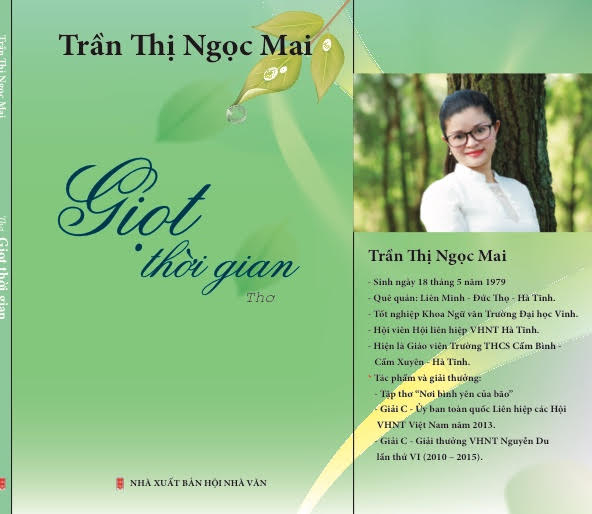 Trần Thị Ngọc Mai, giáo viên Trường PTCS Cẩm Bình, Cẩm Xuyên, Hà Tĩnh gửi cho tôi tập thơ “Giọt thời gian”, Nhà xuất bản Hội Nhà văn 2018 và nói “Mộc mạc ri thôi enh nạ”. Đây là tập thơ thứ 2 của “cô giáo trường làng”. Năm 2013, Ngọc Mai “trình làng” tập thơ “Nơi bình yên của bão”. Cả 2 tập thơ đều đã được Giải C của Hội Liên hiệp VHNT Việt Nam.