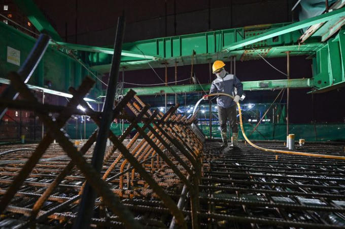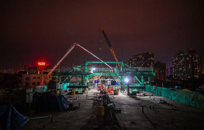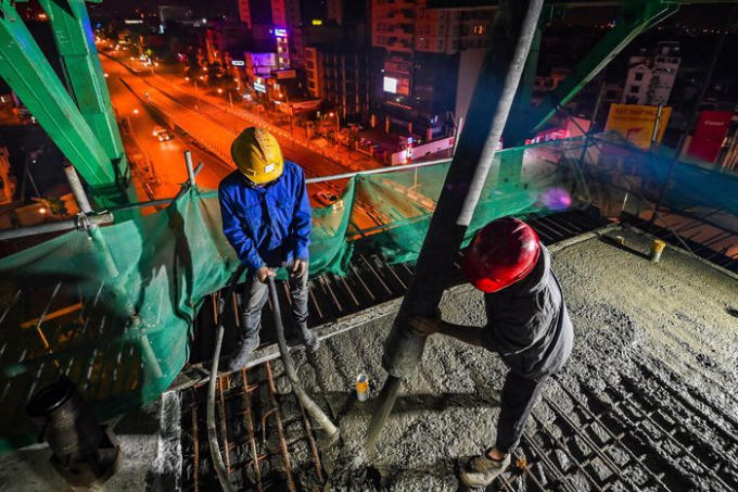 Đêm 17/1, nhà thầu thực hiện đúc dầm cho dự án Vành đài 2 trên cao đoạn qua Ngã Tư Vọng. Đây là hạng mục phức tạp nhất của dự án khi có chiều cao hơn 30 m.