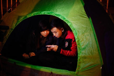 Người dân chăng lều, nằm ngủ, xếp hàng chờ từ đêm qua đến sáng nay để mua vé xem trực tiếp bán kết lượt về AFF Cup 2016 giữa tuyển Việt Nam vs Indonesia