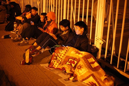 Đêm 2/12, đã có nhiều người dân đã mang lều, chăn bông đến trước cổng sân vận động Mỹ Đình để xếp hàng chờ mua vé trận bán kết lượt về giữa ĐT Việt Nam và Indonesia.