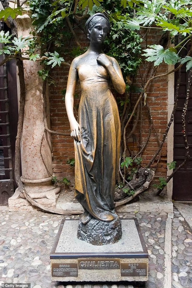 Đáng chú ý hơn cả trong "ngôi nhà của nàng Juliet" là bức tượng đồng được thực hiện dựa trên những hình dung về nàng Juliet (Ảnh: Daily Mail).